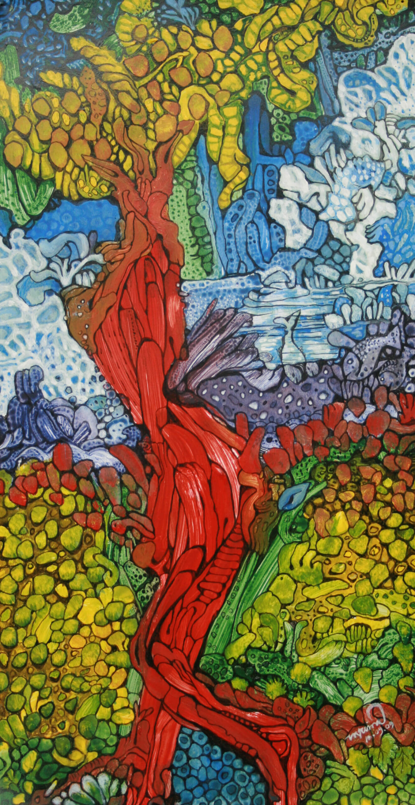 My paintings reflect how I see women. My woman-figures exhibit an indomitable courage to blossom and a reach-out to the sky despite limitless shackles that pull them down. I am fascinated by the all-inclusive and all-round quality of woman. She is a mother, a wife, a lover, a sister, a daughter, and a friend. All in one. She is the one who makes man immortal by carrying Mankind in her womb from generation to generation. We know that man is mortal, but Mankind is immortal and it is woman who makes it possible. She is the inspiration behind all success of man. A constant companion, she is the perpetual and selfless well-wisher, and a constant beneficent of her male counterpart. Nature and woman are same. Like a huge tree, woman also provides shade and shelter to her near and dear ones from the scorching heat of harsh reality. It is she who brings balance and stability in life.